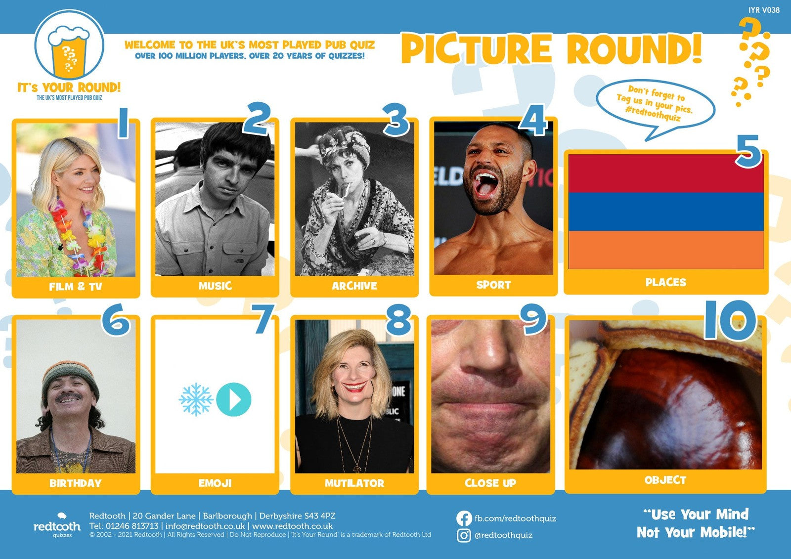 Printable original picture rounds. This is a new page, so we'll start with one image round and add a few more throughout 2023. Each round consists of 20 images on a sheet with a space along the side to write your answers. Our first quiz is a mixture of famous people with the odd flag, building and geographical feature thrown in.