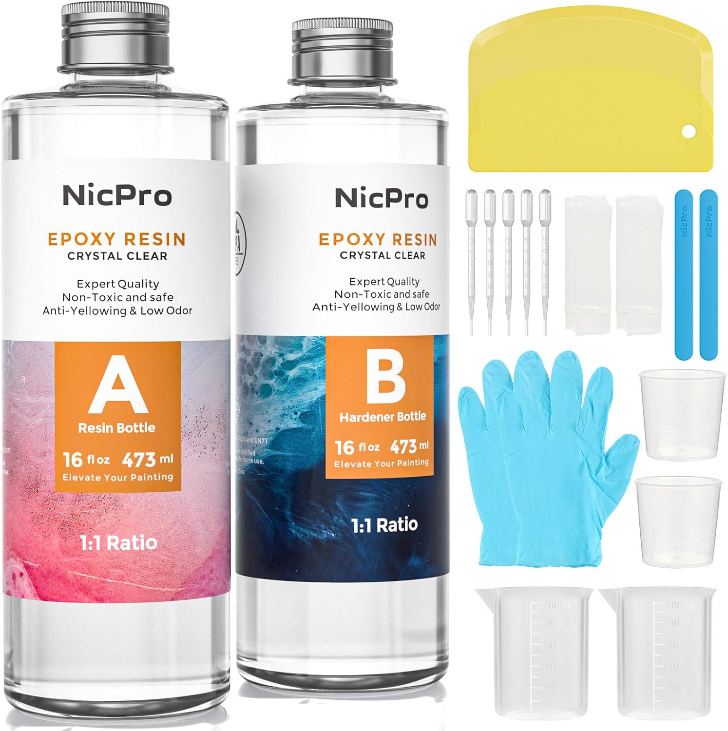 Buy Nicpro Art Epoxy Resin Kit 946 ml, 32 oz Art Starter Clear Coating and Casting Poxy Resin